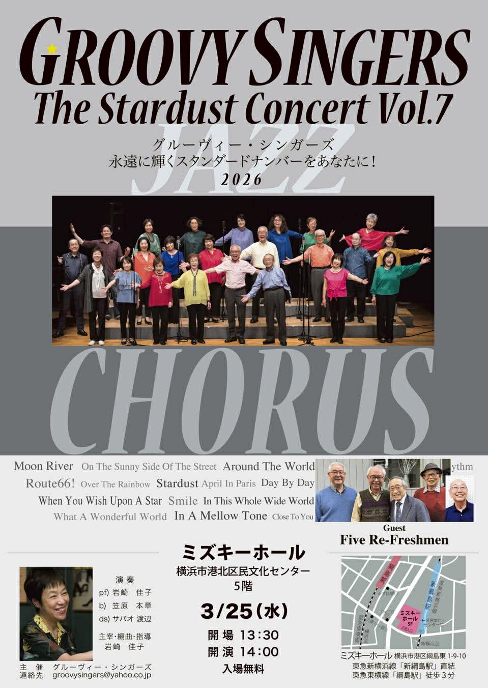 グルービー・シンガーズ Five Re-Freshumen 演奏 岩崎佳子P 笠原本章B サバオ渡辺Ds |